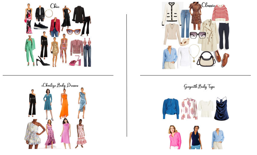 Shop the Boards! After completing the Dressed, NOT Stressed workshop, you will gain access to curated collections of current looks tailored to your body type and personal style. These boards, like the ones seen here, are designed specifically for you. Use them to shop or as inspiration for your own shopping adventures.Normally, this curation is part of a monthly subscription for $39, sent to my members. However, by joining the Dressed, NOT Stressed! course, you will receive one set of boards for free!